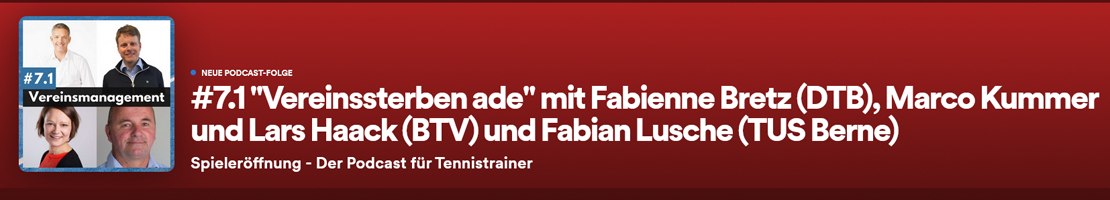 Fabienne Bretz (DTB), Marco Kummer und Lars Haack (BTV) und Fabian Lusche (tus BERNE) sprechen über das Thema Vereinsmanagement – vom DTB Vereins-Benchmarking, bis hin zu konkrete Maßnahmen zur Mitgliedergewinnung. Hört rein!