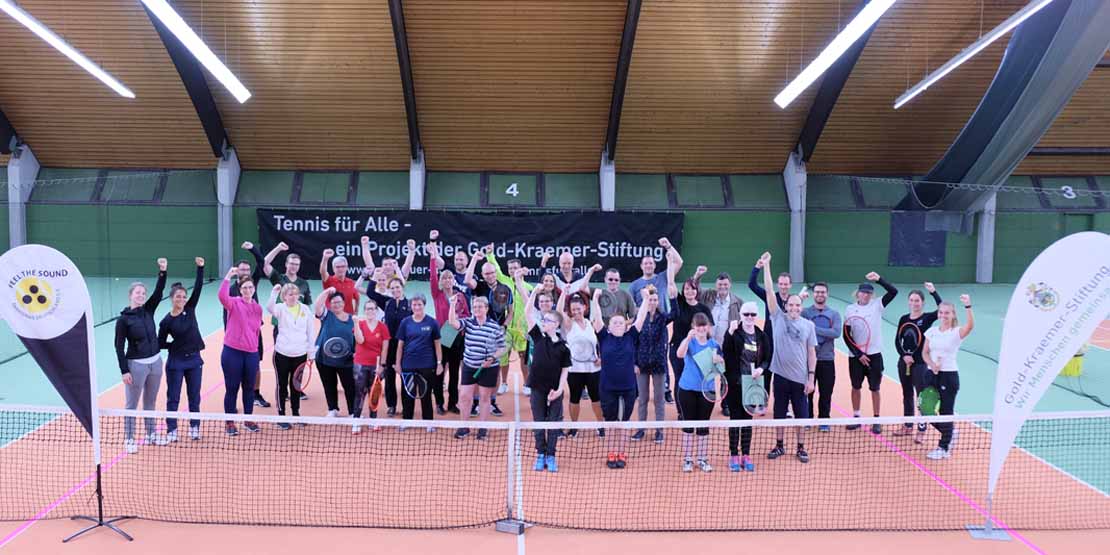 Tennis als Sportart für blinde und sehbehinderte Menschen war zu erleben beim 7. Deutschen Blindentennis-Workshop, zu dem die Gold-Kraemer-Stiftung gemeinsam mit dem Deutschen Tennis Bund e.V. und dem Deutschen Blinden- und Sehbehindertenverband nach Köln eingeladen hatte. Seit 2016 engagieren sich die Partner dafür, dass sich der Tennissport auch für tennisinteressierte Menschen mit Sehbehinderung immer weiter öffnet. Dass der Sport auf dem Vormarsch ist und sich bei der Zielgruppe wachsender Beliebtheit erfreut, bestätigte das große Interesse am jüngsten Workshop-Wochenende. Von den insgesamt 40 Teilnehmenden waren die meisten Neueinsteiger:innen. Die Zielgruppe des Formats sind neben Spieler:innen ebenso Trainer:innen, die mit den hier neu gemachten Erfahrungen Blindentennis in ihre Heimatvereine hineintragen. „Aktuell gibt es deutschlandweit fünfzehn Standorte, an denen blinde oder sehbehinderte Menschen Tennis spielen können“, erläutert Niklas Höfken, Projektleiter des Programms ‚Tennis für Alle‘. „Wir erleben, dass immer mehr Vereine sich für Blindentennis interessieren, sodass Schritt für Schritt weitere Standorte entstehen. Wir wollen, dass Interessierte wohnortnah Tennis spielen können.“ Jürgen Klappschuhweit aus Meißen bei Dresden war im Internet auf der Suche nach Sportarten für blinde Menschen. „Da bin ich auf Blindentennis gestoßen und habe mich sofort angemeldet“, sagt der 46jährige und zeigt sich begeistert. „Ich hatte keinerlei Vorstellung, was mich da erwartet. Dass ich so schnell Erfolgserlebnisse haben würde und den Ball sicher treffe, hätte ich nicht gedacht.“ Jürgen Klappschuhweit hat sich bereits erkundigt, ob es in seiner Heimatstadt oder Umgebung schon einen Tennisverein mit dem Angebot Blindentennis gibt. Genau hier setzt das Projekt ‚Tennis für Alle‘ an: Es unterstützt auf der einen Seite Sportler:innen bei der Suche nach einem passenden Angebot und auf der anderen Seite berät und begleitet es Tennisvereine und deren Trainer:innen mit einer entsprechenden Aus- und Fortbildung. Für Tennistrainer René Platzer aus Weiterstadt bei Darmstadt war der Workshops ebenfalls Neuland. „Bin sehr überrascht, wie konzentriert und fokussiert die Teilnehmenden sind, die sich taktil und über ihr Gehör im Raum orientieren müssen“, attestiert der Trainer den Sportler:innen, nachdem er sich selbst zu Beginn mit einer Augenmaske den Herausforderungen des Blindentennis stellte. „Es ist nicht ohne, da musst du 100% fokussiert sein“, konstatiert er und ergänzt, „ich kann mir sehr gut vorstellen, Blindentennis auch in unserem Verein anzubieten.“ Viel Erfahrung brachte Trainerkollege Fabian Kallmeier aus Löhne mit. „Ich trainiere schon einige Jahre Blindentennis beim Löhner TC. Bei uns haben wir inzwischen alle Startklassen, die es in dieser Sportart gibt“, berichtet er und verweist auf das große Einzugsgebiet seines Vereinsangebots. „Wir haben sogar Spieler, die einmal in der Woche aus Hamburg zum Training und zu Wettkämpfen zu uns kommen, aber wir engagieren uns mit dafür, dass weitere Vereine von unserer guten Erfahrung profitieren können und einsteigen.“ Sieh dir auch die 13 neuen Trainingsvideos an: Blindentennis Video-Tutorials